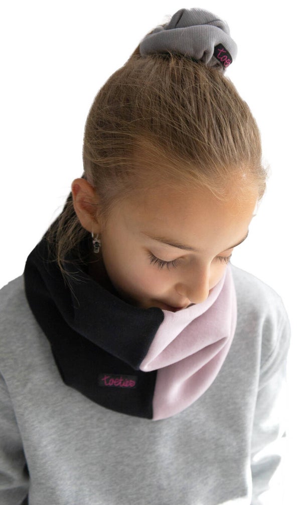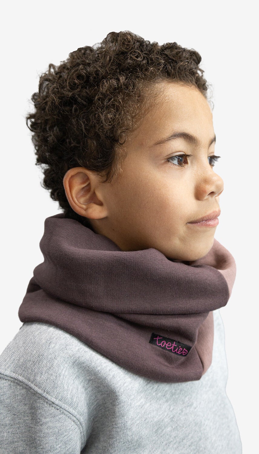 De Kringel is een zachte colsjaal van joggingstof voor kinderen. Stel 'm samen in kleuren naar keuze. Warm, soepel en comfortabel voor elk kind.