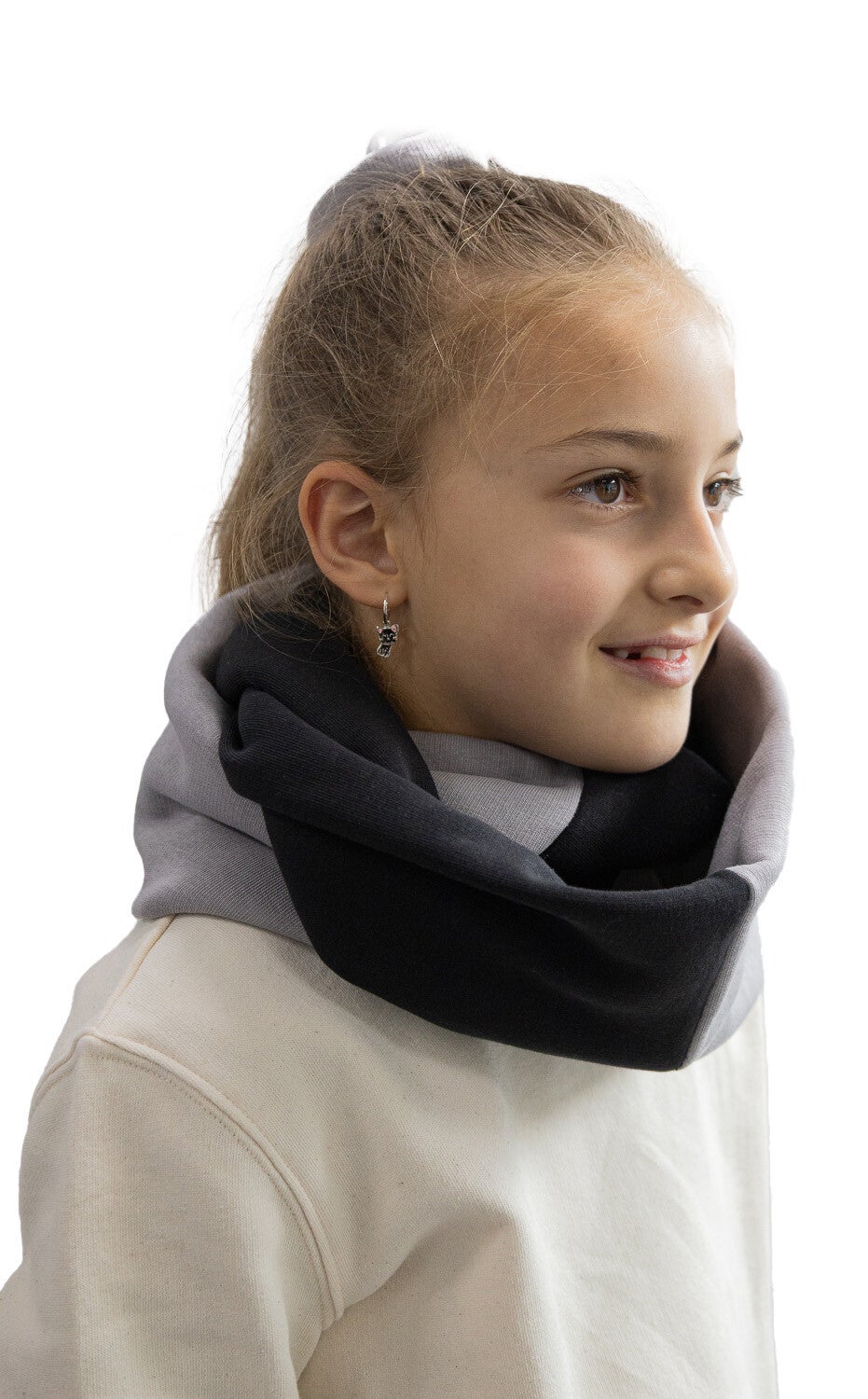 De Kringel XL is een zachte, warme colsjaal van joggingstof voor kinderen. Stel 'm samen in twee kleuren en wikkel 'm dubbel voor extra knusheid.