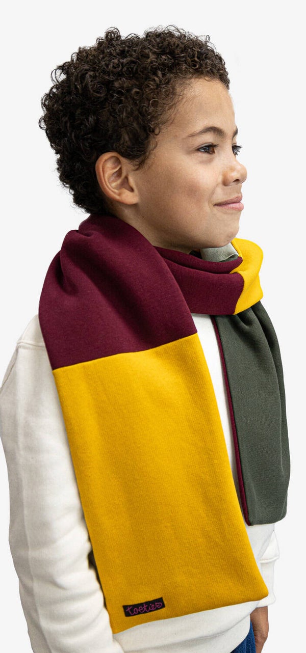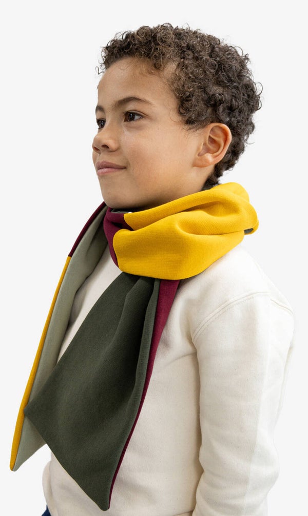 Mix, match en maak ‘m eigen! De Vlakdoek is een zachte, lange kindersjaal met kleurvlakken in jouw favoriete kleuren.